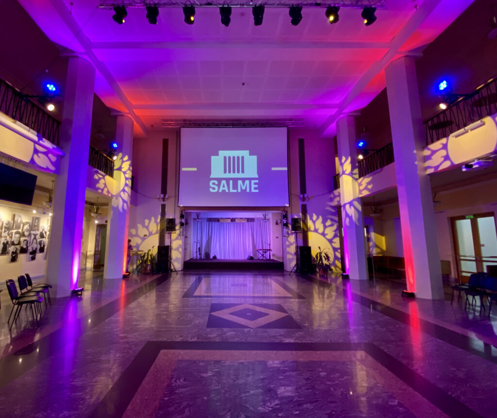 Läbi Salme Kultuurikeskuse 1. ja 2. korruse avanev ca 300 m2 fuajee.